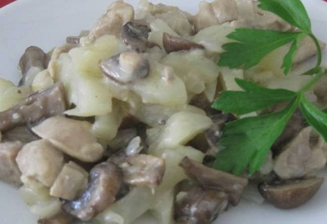 - Stapsgewijs recept voor het maken van kip met champignons in een romige kaassaus