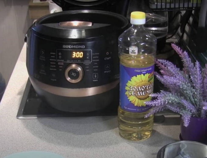 - Schakel de "Fry" -modus in en giet olie zodat de bodem van de multicooker gesloten is.