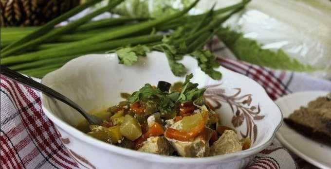 - Aromatische kipfilet met groenten, gebakken in een pot