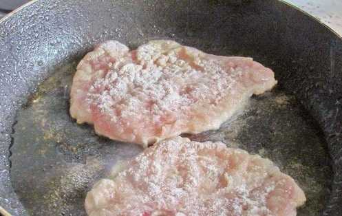 - Bak het vlees aan beide kanten. Voeg zout en zwarte peper toe.