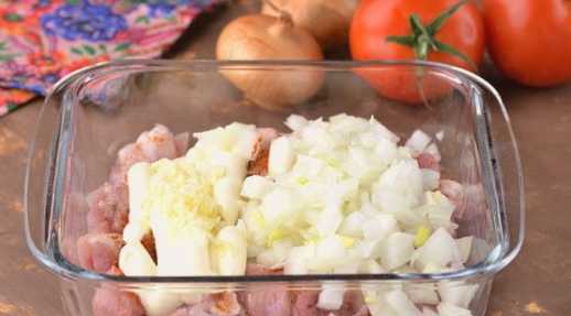 - We bestrijken het vlees ook grondig met mayonaise. We verspreiden het bereide ingrediënt voor groenten en sturen het 1,5 uur naar de oven. Wij bakken op een temperatuur van 200 graden.