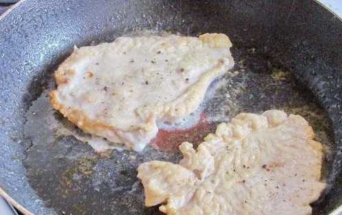 - Bestrooi de filetstukjes met bloem en leg ze in een met olie voorverwarmde koekenpan.