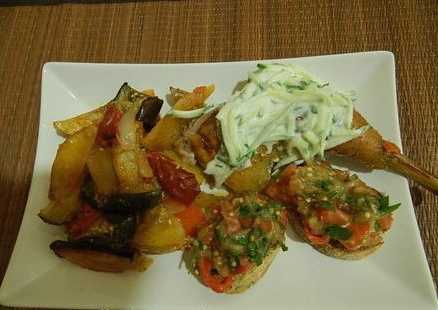 - We halen de ovenschaal uit de oven, verwijderen de folie en laten iets afkoelen.