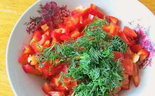 - Snijd de tomaat in blokjes, hak de verse dille fijn.