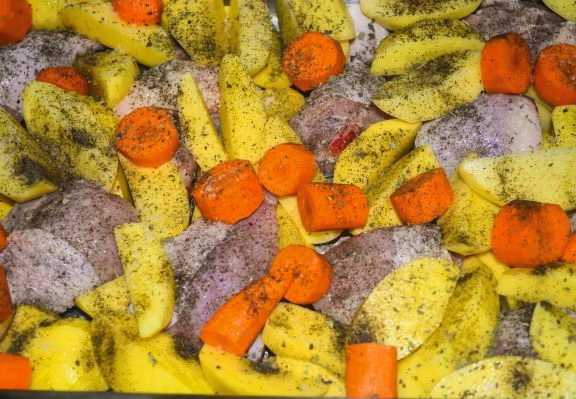 - Ovengebakken zachte en sappige kip met aardappelen en groenten