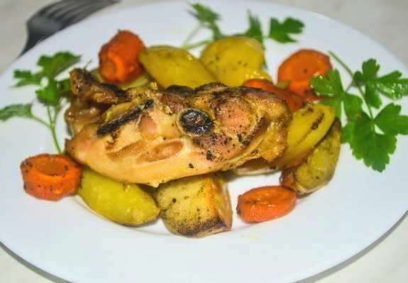 Ovengebakken zachte en sappige kip met aardappelen en groenten