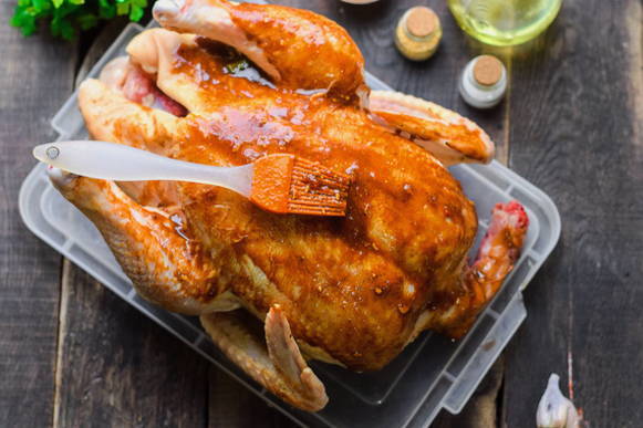 Voor de feesttafel wordt vaak hele kip gebakken. Om het product er geurig en rossig uit te laten komen, marineer het in sojasaus met kruiden. Verras uw dierbaren met een helder gerecht.