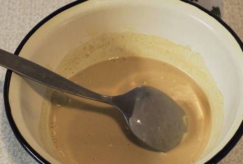 - Giet sojasaus in een diepe kom en voeg zure room toe.