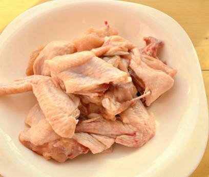 - We wassen de kippenvleugels zorgvuldig onder water en laten ze drogen.