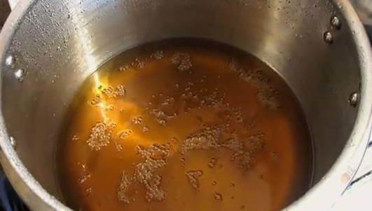 Hierin verhitten we voorgespannen berkensap op het fornuis. U hoeft het product niet aan de kook te brengen.