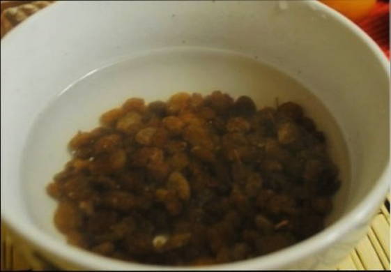 We wassen de rozijnen en dompelen ze onder in de voorbereide plastic container.