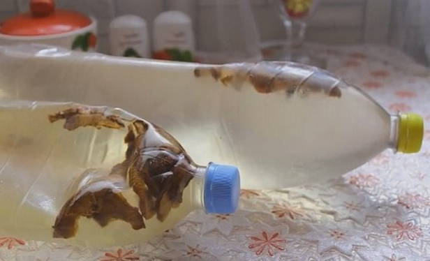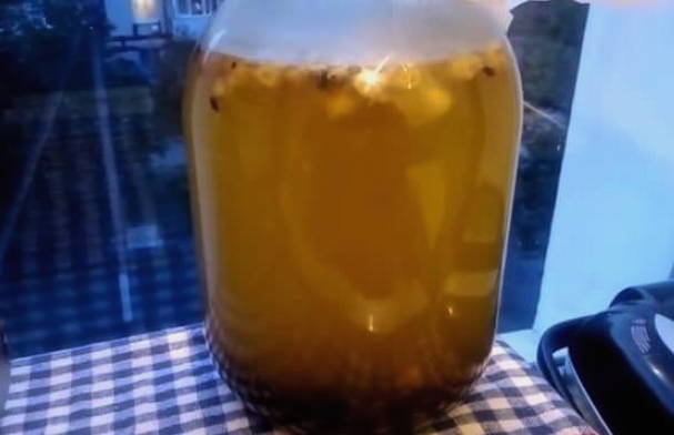 Giet de vloeistof na een tijdje in schone potten, flessen of een kan. We sluiten de container met deksels en zetten hem op een koele plaats.