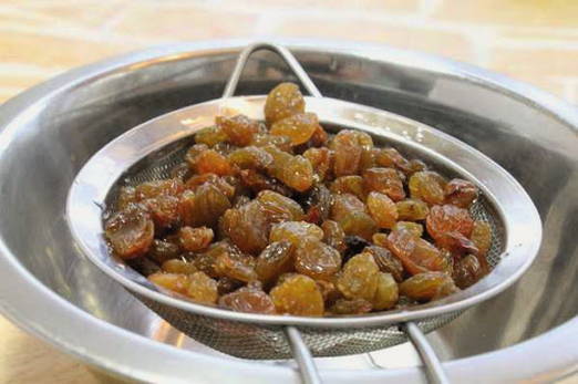 Daarna wassen we de rozijnen en laten we ze een beetje drogen.