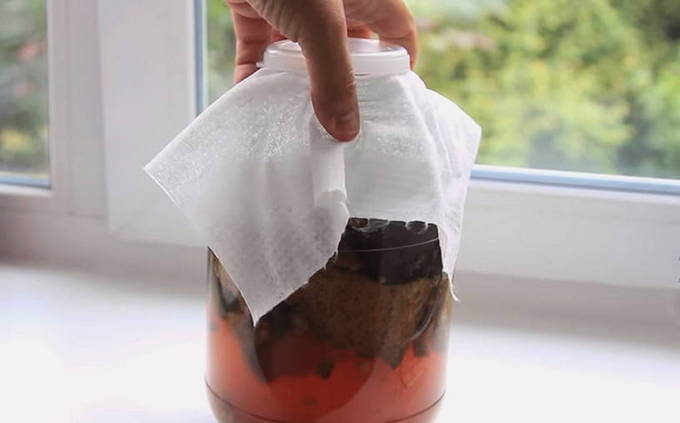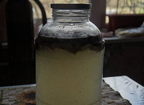Bedek de pot met de inhoud met een deksel en laat hem 4-5 dagen op een warme plaats staan. Kan in een handdoek worden gewikkeld.