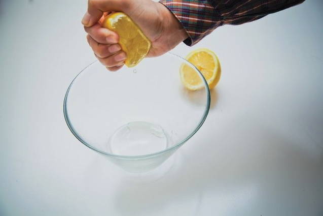 Pers het sap apart uit een halve citroen. We verwijderen de botten.