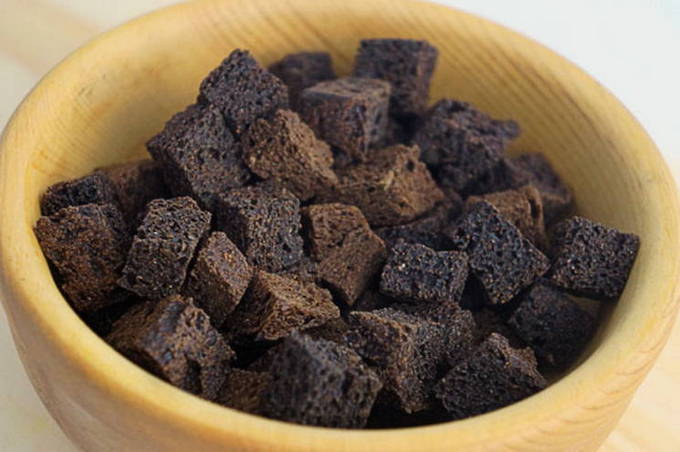 We meten de benodigde hoeveelheid Borodino beschuit af. Je kunt ze ook zelf klaarmaken. Het is voldoende om ze in de oven te drogen.