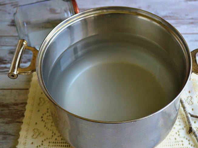 Spoel de glazen pot grondig af en steriliseer hem. Hetzelfde doen we met het deksel.