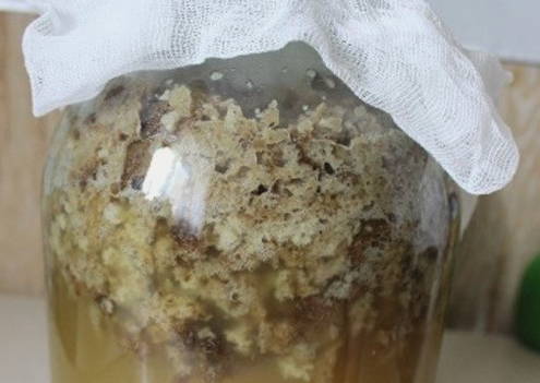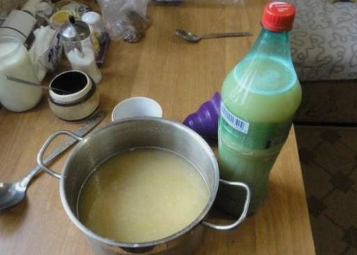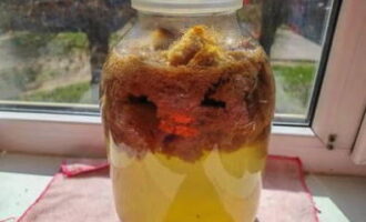 - Vul de inhoud van de pot met afgekoeld gekookt water. Bedek de nek met gaas.We zetten de container in deze vorm 3-4 dagen op een warme plaats.
