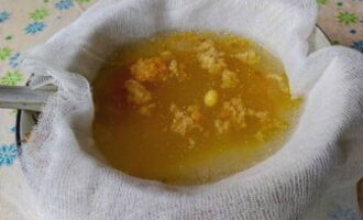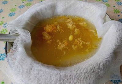 - Vervolgens filteren we het resulterende product door een zeef of kaasdoek.