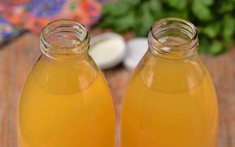 - Zelfgebakken broodkvas zonder gist is klaar. Giet in glazen en help jezelf.