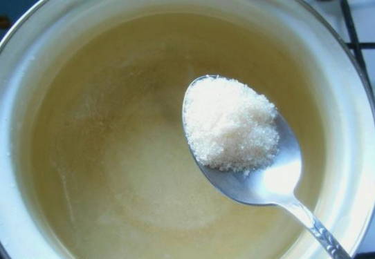 - Kook twee liter water met suiker. Roer het product om en laat het afkoelen tot kamertemperatuur.