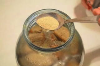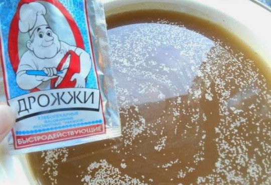 - Laat de totale massa afkoelen en roer de droge gist erdoor. Als het product in heet water wordt ondergedompeld, vindt er geen fermentatie plaats.