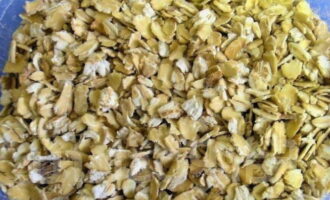 Doe de gehakte havermout in een pan, giet er heet water bij en laat ongeveer 2 uur in een op 150 graden voorverwarmde oven staan.