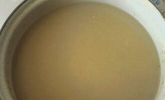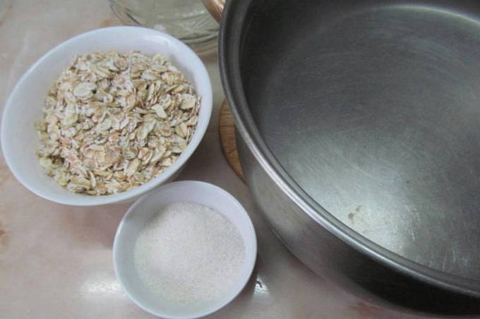- We wassen de haverkorrels onder stromend water en doen ze in een pot, gieten er 5 eetlepels fructose bij en vullen ze met koud water. Het is beter om het water voor te filteren. Het water in het blikje moet een halve liter minder zijn dan het volume van het blikje.