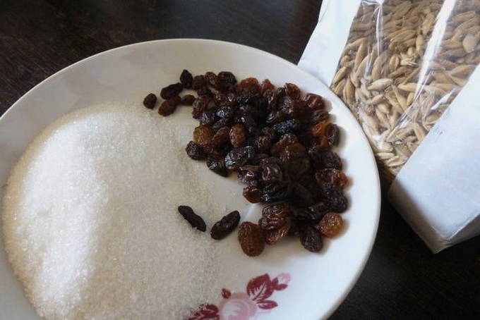 Stapsgewijs recept voor het maken van kwas van haver met rozijnen