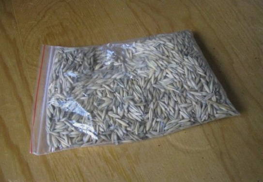 - Giet de haver op de doek en sorteer het vuil. We wassen het grondig onder stromend water en brengen het over in een pot.