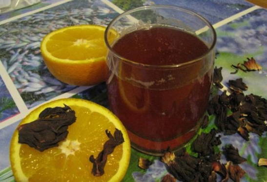 - Voeg hibiscusthee toe aan kwas.