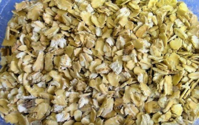 Doe de gehakte havermout in een pan, giet er heet water bij en laat ongeveer 2 uur in een op 150 graden voorverwarmde oven staan.