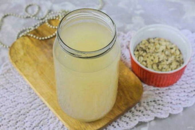 - We laten het doordrenkte water weglopen en laten de haver achter. Vul de resulterende startercultuur met water, voeg vervolgens honing met fructoseresten toe, meng grondig, dek de pot af met gaas en laat een dag op een warme plaats staan.