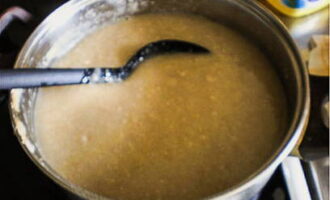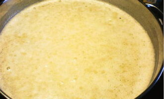 Roer de bloem en het water goed door, dit gaat het gemakkelijkst met een garde. Het is onwaarschijnlijk dat u alle klontjes kunt breken, maar het is beter om hun aantal zo veel mogelijk te minimaliseren. Zet het vuur uit en laat het mengsel 10 uur afkoelen en trekken.