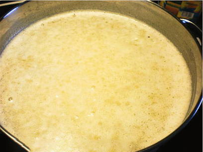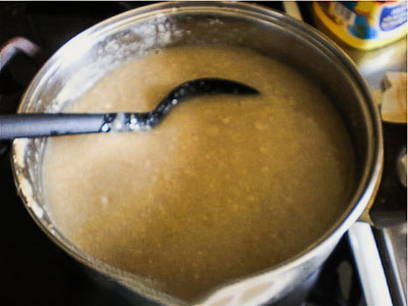 - Meng in een pan met dikke bodem de mout, suiker en bloem.