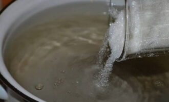 Giet water in een grote pan. Zet het fornuis aan en zet het vuur op medium. We zetten een pan water op de brander. Het water moet koken. Voeg dan pas de benodigde hoeveelheid suiker en witlof toe.