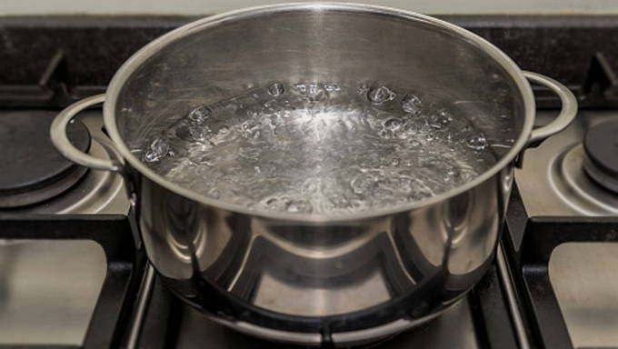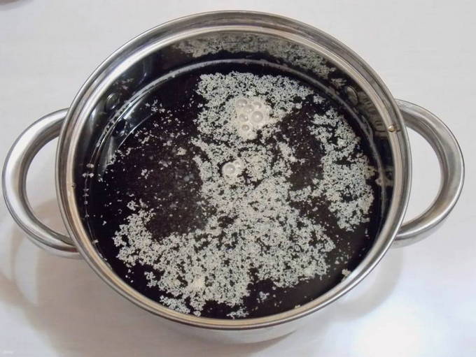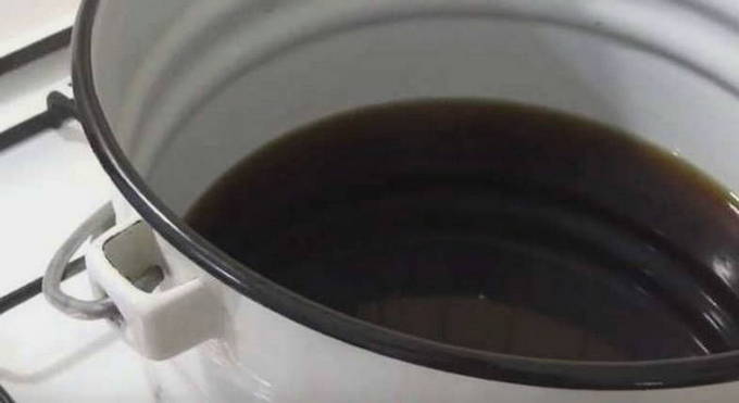- We zetten de kachel aan. We zetten een pan met de inhoud op de brander en wachten tot de vloeistof met onzuiverheden aan de kook komt. Wanneer dit gebeurt, zet u het fornuis uit en dek u de pan af met een deksel.