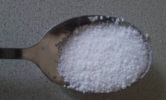 - Schenk eerst 1,5 theelepel witlof in een schoon glas. Voeg citroenzuur en suiker toe.