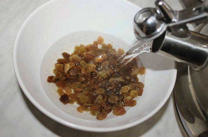 - Voeg dan citroensap toe. Spoel de rozijnen vooraf af en droog ze lichtjes. Giet het na alle procedures uit na het citroensap.