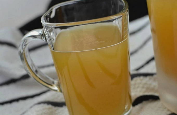 - Zeef het kwas in een glazen pot en laat afkoelen. Na 1-2 uur drinken we een verkwikkend drankje.