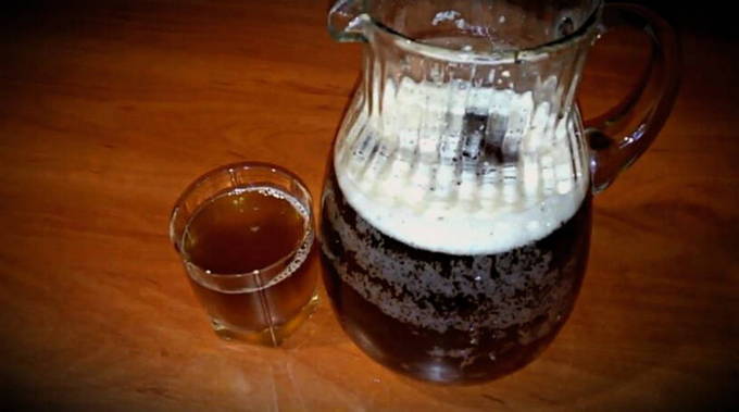 - Haal de pan van het fornuis en laat de vloeistof afkoelen. Giet water met gist erbij en laat het kwas opnieuw trekken (bij voorkeur een nacht). Filter en koel de drank na 6-7 uur. We serveren aan tafel.