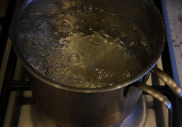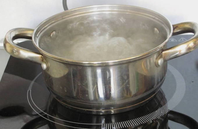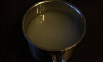- Kook vervolgens water op het fornuis en los hierin zout en suiker op. Daarna verwijderen we het vuur, voegen azijn toe aan de vloeistof en laten afkoelen tot het warm is.