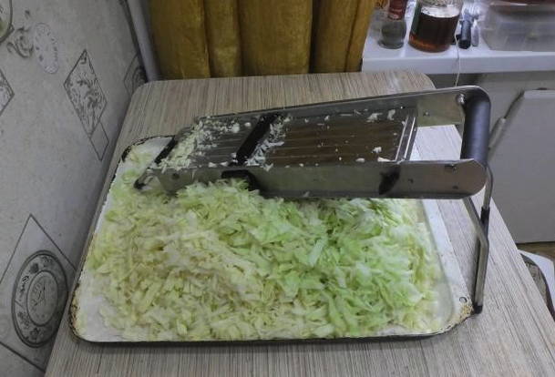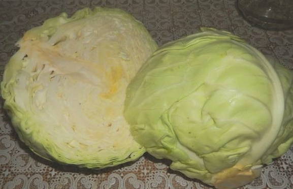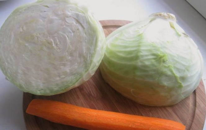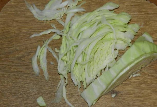 - We wassen en snijden de koolkop voor het gemak in verschillende delen. Hak het product fijn en omzeil de stronk. Het zal niet nuttig voor ons zijn.