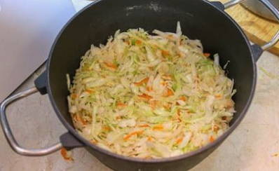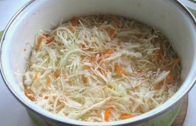 - Zuurkool met wortelen in een pan - een klassiek recept