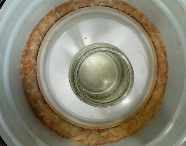 - Verwijder na een paar dagen de beklemming en roer de sappige zuurkool door. Klaar!