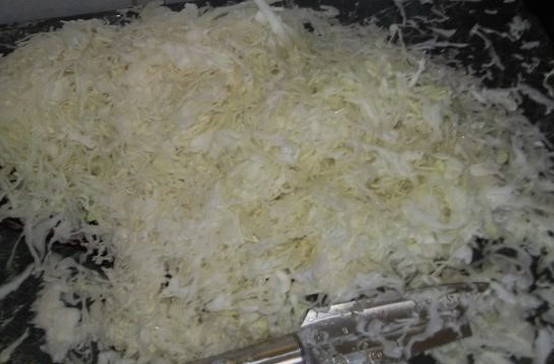- We wassen de kool onder water en snijden hem vervolgens in dunne en lange reepjes.