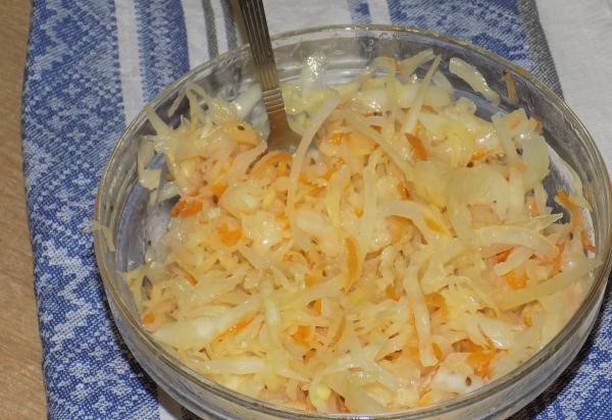 Zuurkool met wortelen in een pan - een klassiek recept