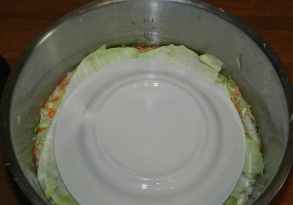 - We sluiten de container met de gemarineerde kool af met een deksel en zetten deze op een koele plaats. Zeer snel zal het product fermenteren en klaar zijn voor gebruik.