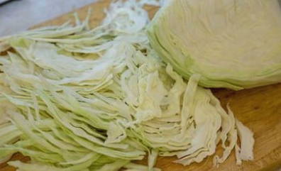- We wassen de kool en snijden hem op een handige manier dun.