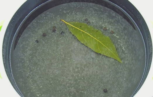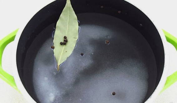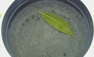 Laten we eerst de pekel voorbereiden. We koken water samen met zout, suiker, laurier en zwarte peperkorrels.